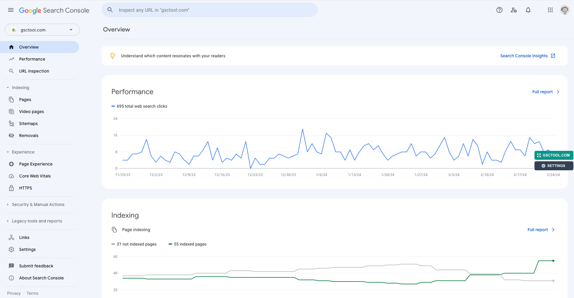 3. **Enjoy**: Now, you do not need to close the main menu every time you open a Google Search Console page. 🎉